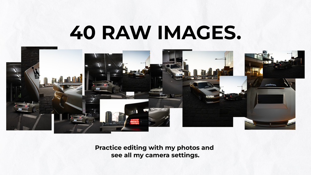 - 40 original RAW images of the Nissan Silvia S14 for you to practice your editing with