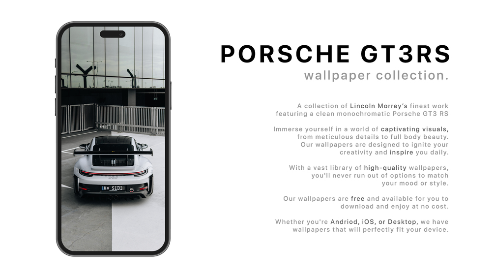 Check out this clean monochromatic wallpaper pack featuring a Porsche GT3 RS. Enjoy all these FREE wallpapers for any device!